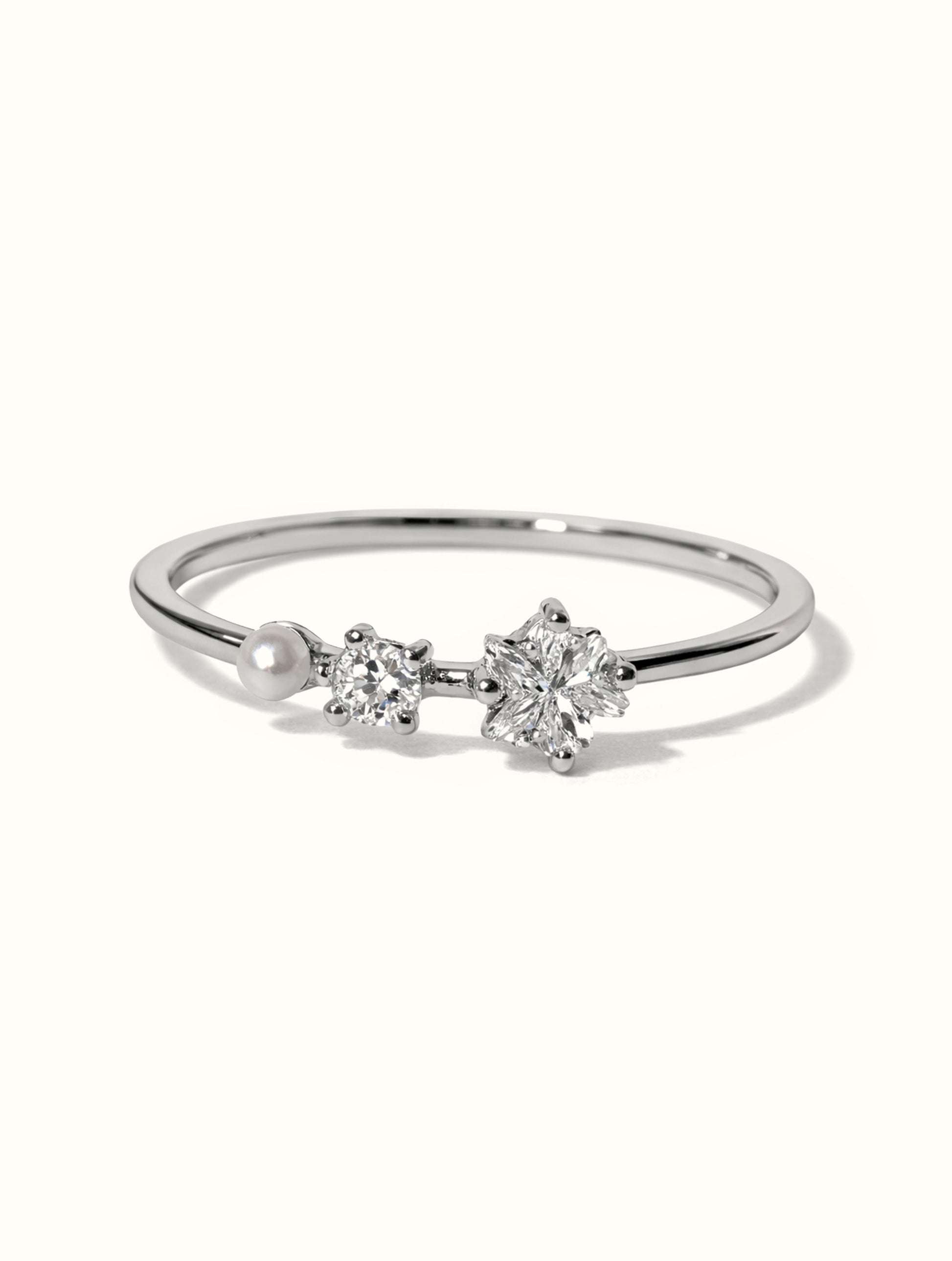 Like a tiny constellation wrapped around your finger, the Okimi Stardust Ring captures that magical moment when the night sky decides to show off. With a pearl, a brilliant sparkle, and a starburst that shines like it fell straight from the cosmos, this ring is proof that sometimes the best wishes really do land right in your hands.
