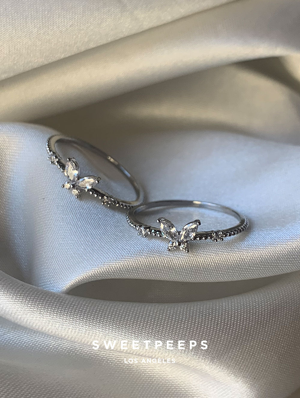Tiny Butterfly Gem Ring - Silver