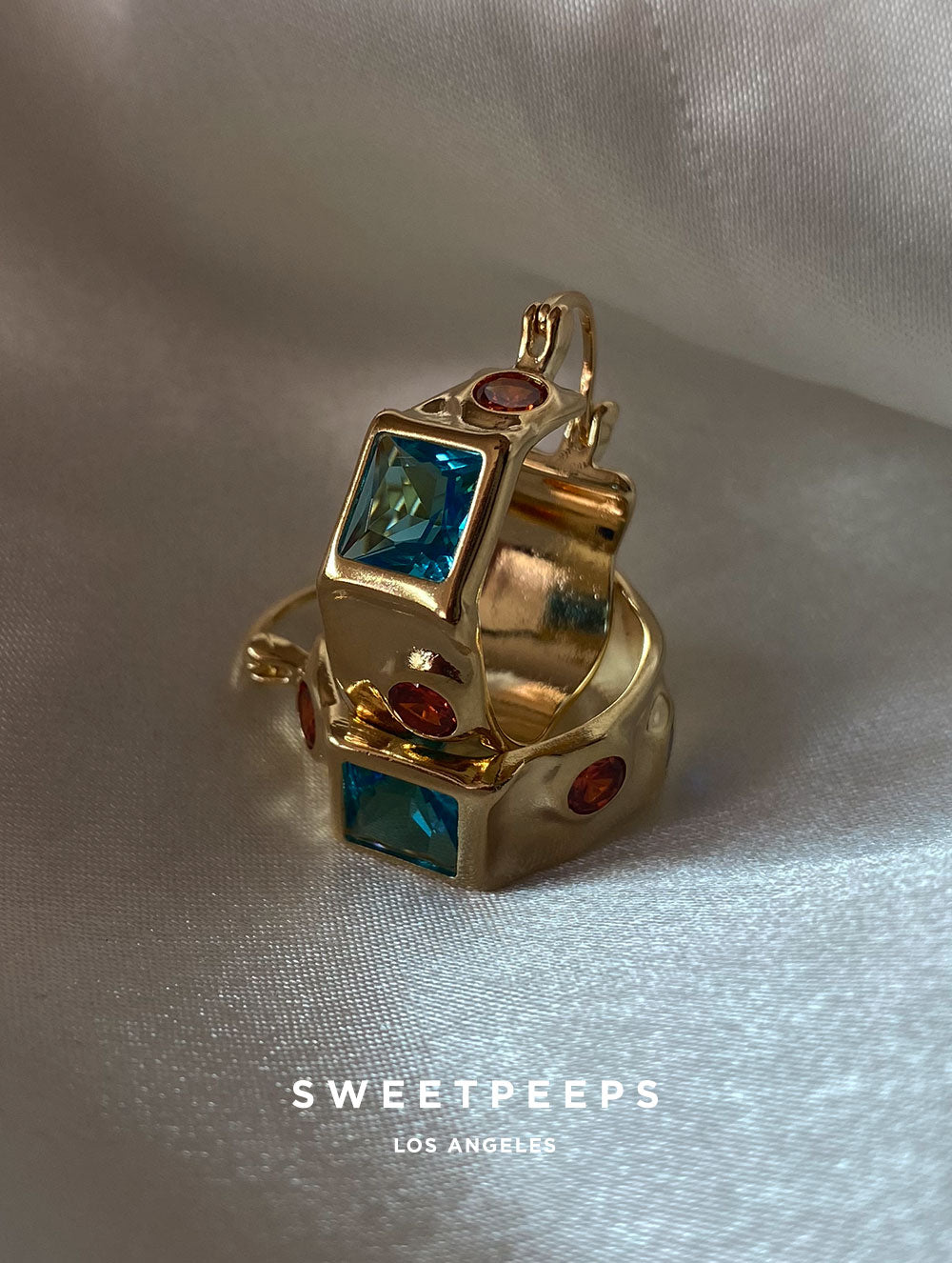 A breezy pop of pastel elegance: gold-dipped earrings with soft celadon-teal accents and modern drop silhouette. Stack them, gift them, wear them solo, either way your ear game just leveled up.